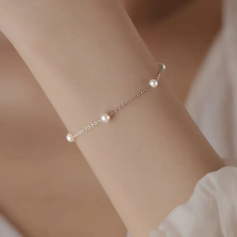 Lustra Freshwater Pearl Bracelet Stainless Steel Adjustable Chain Versatile Elegance