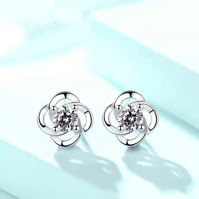 Seraphina Clover Studs Rhinestone Inlay ;Four-Leaf Clover Design ;Stainless Steel Posts;Hypoallergenic
